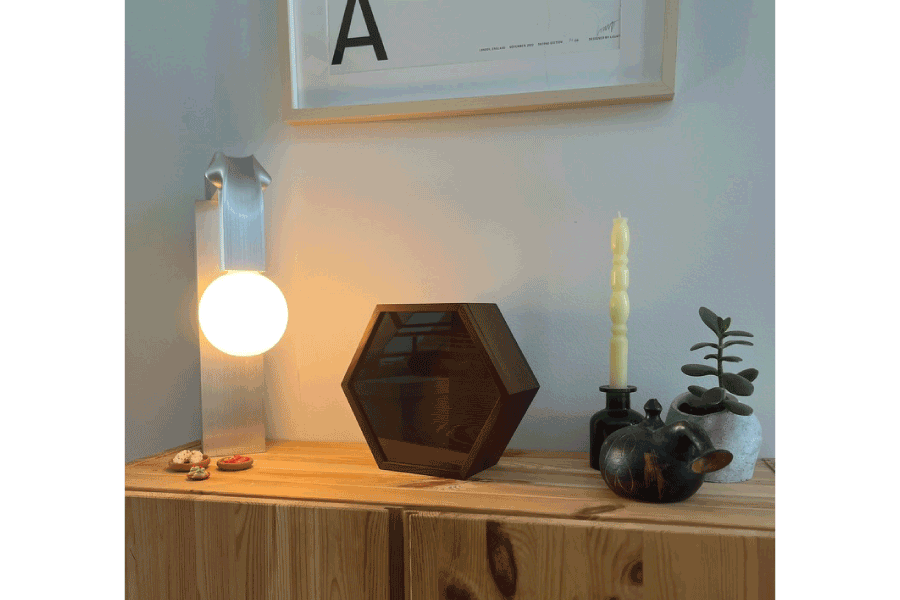• hexagon shape on the wall, paying tribute to the name “Hexcase.”